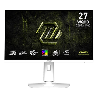MAG 274QRFW X32 White – RGB 27″ Rapid IPS 2560 x 1440 QHD Flat Gaming Monitor, Adaptive Sync, HDR 400, non-Glare with narrow bezel, 320Hz Refresh Rate, 0.5ms (GTG) 2 x HDMI Port, 1 x Displayport, Tilt, Swivel, Height and Pivot Adjustable