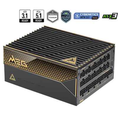 MEG Ai1600T PCIE5, USA,1600W Power Supply, Fully-Modular, 80 Plus, Japanese Electrolytic capacitor, Color Box, Solid wood pallet packing