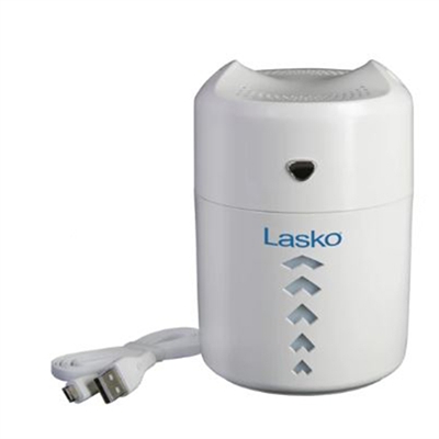 Cool mist humidifiers create a soothing atmosphere in your home. According to the Mayo Clinic, indoor humidity between 30% to 50% is ideal and can help soothe dry air problems of the skin, throat, and sinuses. Additionally, proper humidity levels can create an atmosphere for improved sleep and reduce static electricity from dry air. The Ultrasonic Personal Humidifier from Lasko provides quiet, soothing humidity for your room. The compact size means it is perfect for adding moisture to the air in your home office or while you travel. It comes with a USB cable, so it’s easy to plug it in to a laptop or standard USB plug adapter. The cool mist nozzles feature 4 mist control settings: both nozzles mist, alternating nozzles mist, right nozzle only, and left nozzle only. The easy-fill tank holds 400 ml of water and features a convenient top fill design, and the humidifier will automatically shut off when the tank is empty. The simple one button control allows you to adjust mist level and the multi-color LED nightlight. Regular maintenance is a breeze because there are no filters to replace. Comes fully assembled.