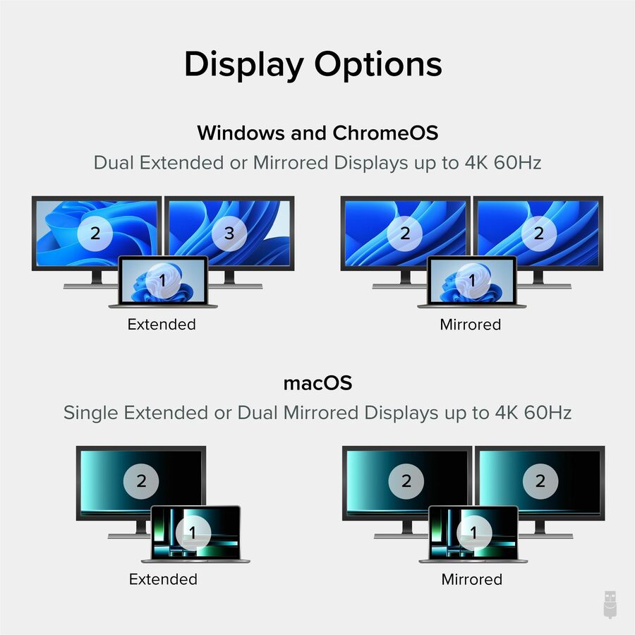 - Compatibility – For Windows 10, 11+ and ChromeOS 100 or later systems with a USB-C, Thunderbolt or USB4 port and DP Alternate Mode over USB-C support (DP 1.4). Not recommended for Mac.