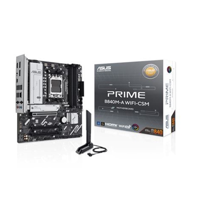 ASUS PRIME B840M-A WIFI-CSM AMD AM5 B840 mATX motherboard, Advanced AI Ready, DDR5, PCIe 4.0 Ready, three M.2 slots, Wi-Fi 6E, 2.5Gb LAN, DisplayPort, HDMI , USB 5Gbps Type-C , BIOS FlashBack , Aura Sync