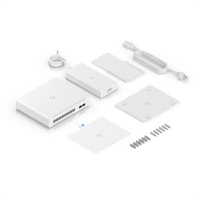 Compact desktop/wall-mountable, professional-grade 8-port, Layer 3 Etherlighting PoE++ switch with (8) 10 GbE and (2) 10G SFP+ ports.Etherlighting ports that illuminate to indicate port location, speed/link, and native VLAN/network (8) 10 GbE PoE++ ports (2) 10G SFP+ ports 155W total PoE availability Versatile desktop and wall, mounting Pair with UniFi Enterprise Patch Cable for optimal brightness.