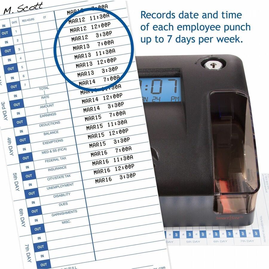 - Patented SmartSite™ time stamp alignment guide ensures perfectly aligned time card punches and time stamps