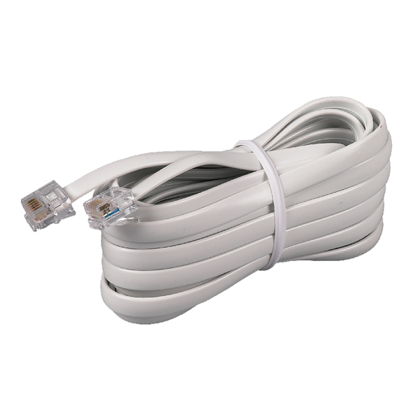 • Connects phone or modem to a phone outlet;• Connectors on both ends;• Compatible with 2- or 4-wire systems;• Lifetime warranty;• 15 ft.;• White;