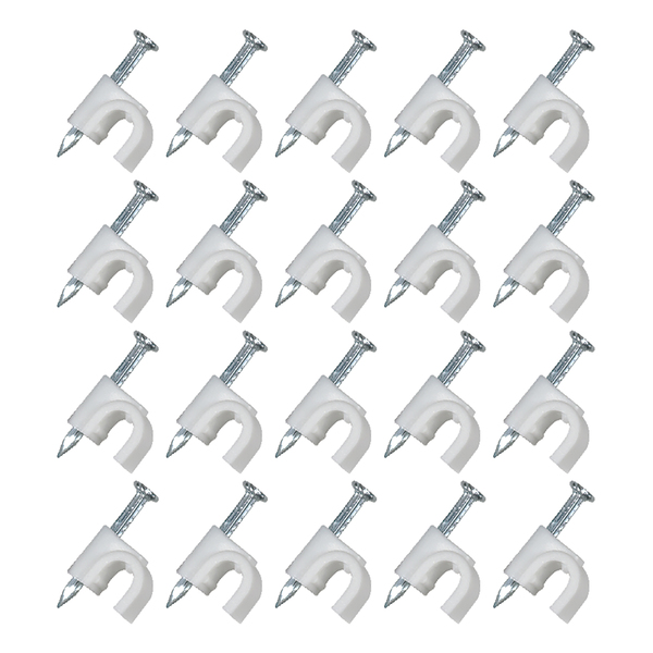 • Secures coax cable installations;• Easy installation – slip coaxial cable under clamp and nail clamp to a hard surface;• Constructed with durable materials;• Lifetime warranty;• White;• 20 count;