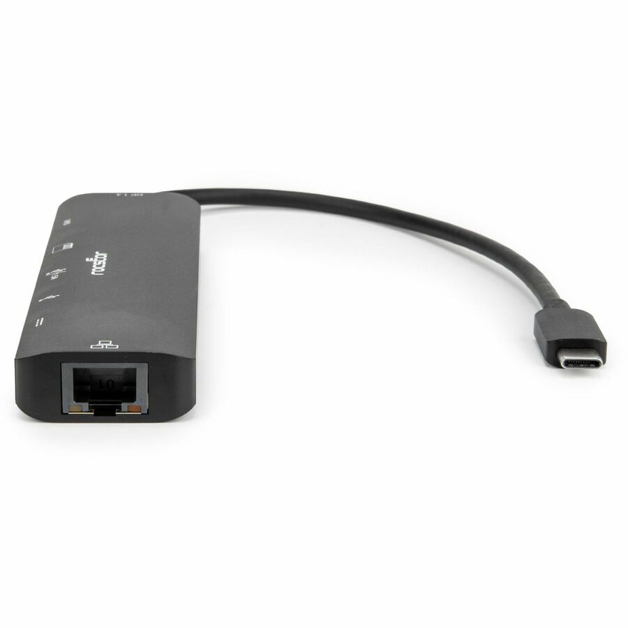 The Rocstor Premium USB Type-C 7-in-1 4K Multiport Adapter is a premium solution designed to expand the connectivity options of Type-C and Thunderbolt 3/4 hosts, including PCs, laptops, and mobile phones. This versatile hub features an HDMI port, two USB-A ports, an RJ45 Ethernet port, SD and Micro SD card slots, and a Type-C female port. Ideal for devices with a single Type-C port, this adapter is equipped with the latest DisplayPort 1.4 Alt mode supported IC, enabling HDMI video output at a maximum resolution of 4K/60Hz while simultaneously transferring USB 3.1 data at speeds up to 5Gbps. The RJ45 port ensures reliable and fast Gigabit Ethernet connectivity, enhancing your networking capabilities.