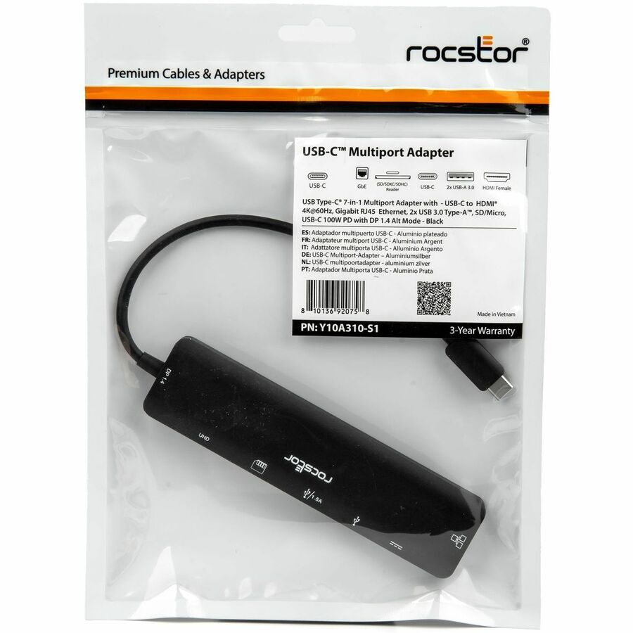 Designed for robust performance and versatility, the Rocstor USB Type-C 7-in-1 4K Multiport Adapter supports HDR, HDCP 2.2 & HDCP 1.4, and various color depth outputs, ensuring an exceptional visual experience. Whether you’re using Windows or MacOS, this adapter is an essential accessory for maximizing your device’s connectivity and productivity. Backed by Rocstor 3-year limited warranty and lifetime free technical support.