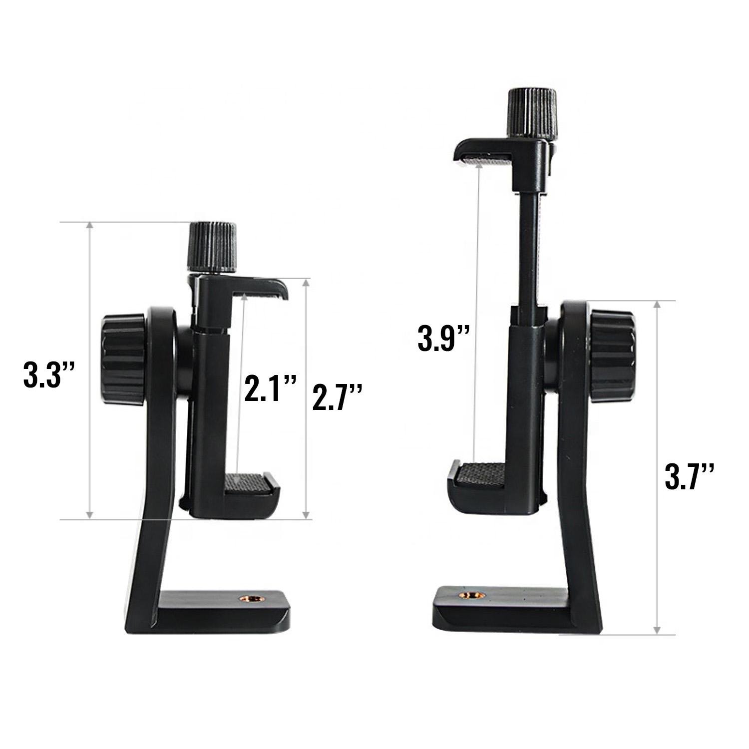 Cell phone tripod holder fits most devices (width between 2.12″”-3.97″”):