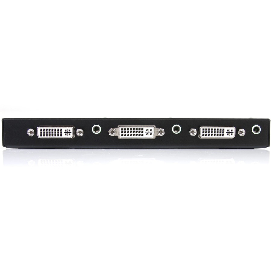 The ST122DVIA DVI splitter lets you share one DVI video and audio source on two displays and acts as a signal amplifier that allows you to locate your DVI monitors up to 33ft (10 m) away from your computer or DVI signal source.