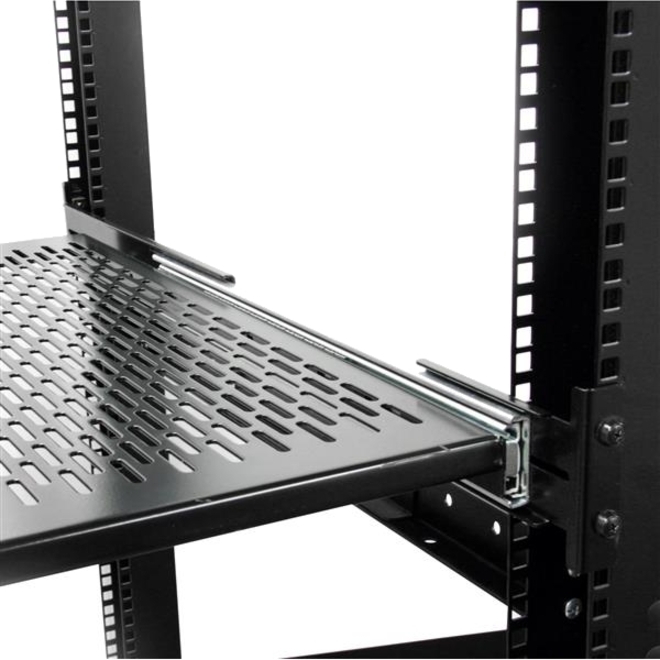 - VERSATILE FUNCTIONALITY: This 19in (50cm) deep sliding cabinet shelf is ideal for adding additional sliding storage space for your IT or AV accessories; It is also vented to ensure consistent airflow