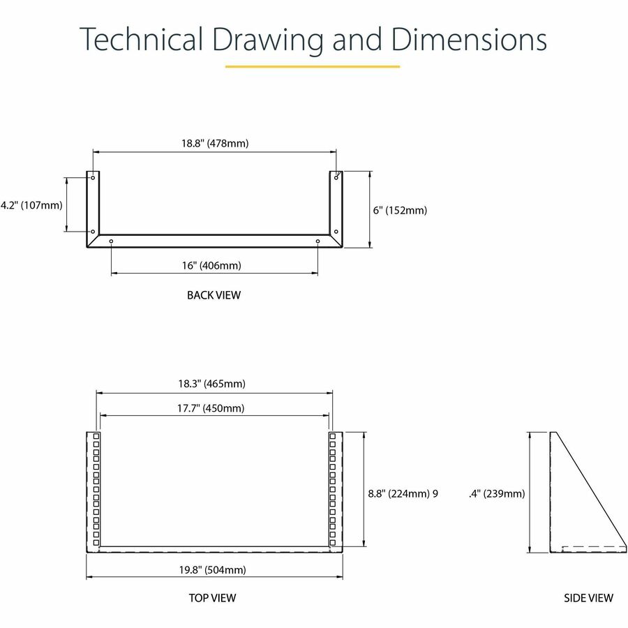 Constructed to EIA-310 19in rack standards, the wallmount bracket features a sturdy steel design and is backed by StarTech.com’s Lifetime Warranty.