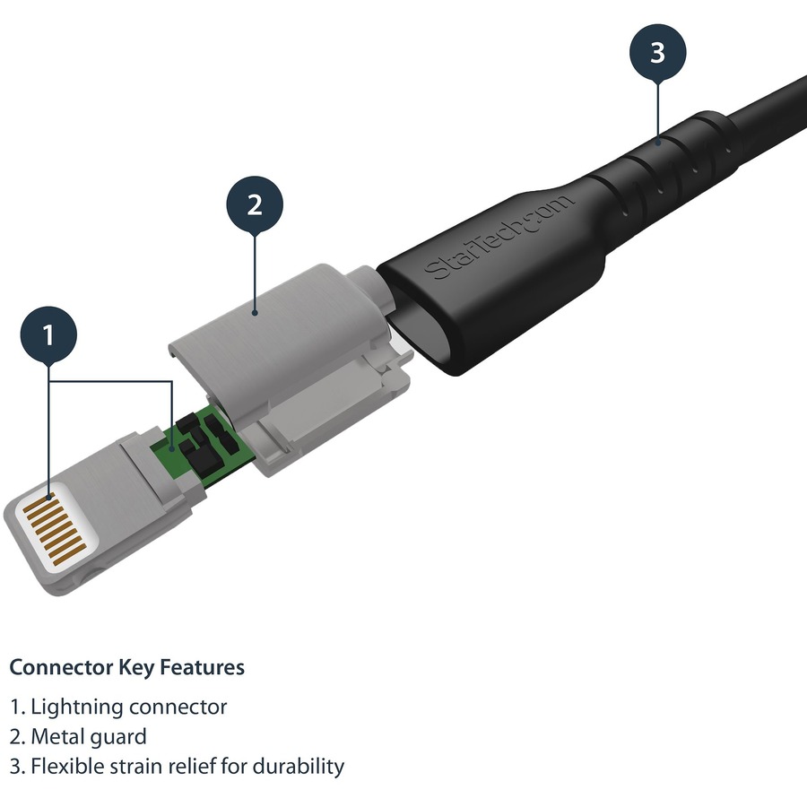 RUSBLTMM2MB is an Apple MFi certified Lightning cable backed by a StarTech.com 2-year warranty.
