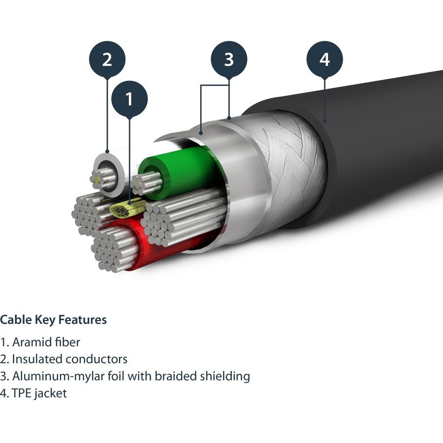 - Aramid fiber adds strength and durability to the cable