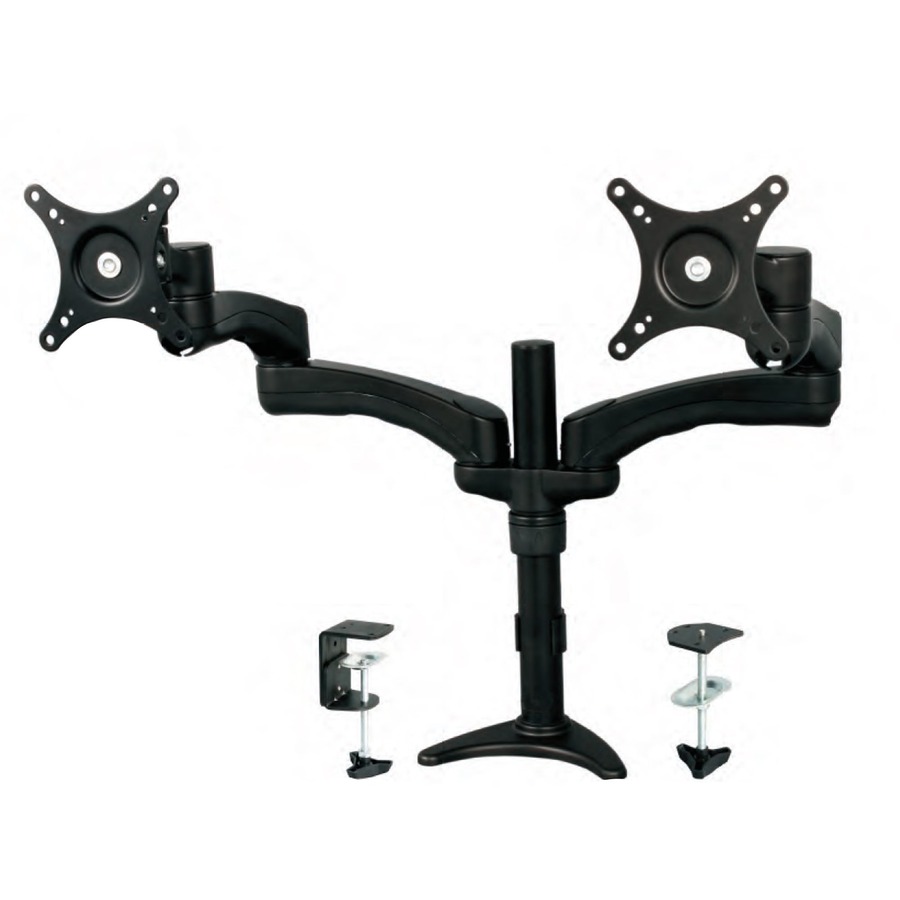 The monitor arms offer a wide range of motion on several axes, giving you the freedom to place your displays side by side, spread apart, back to back, or anywhere in between. For viewing longer pages or blocks of code without having to scroll down the screen, the dual arm also supports landscape-to-portrait display rotation for each monitor.