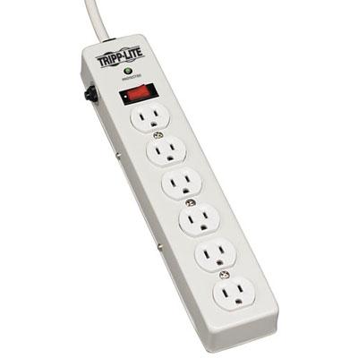 Tripp Lite’s TLM606HJ surge suppressor offers complete AC surge suppression for comprehensive protection of personal computers, home stereos, televisions, VCRs, DVD players, power tools and other electrical and electronic equipment. Heavy-duty AC surge suppression shields connected equipment from damage and performance problems due to transient surges. TLM606HJ offers 6 total outlets, a 6 foot power cord and diagnostic LED to warn of suppressor damage. AC surge suppression rated at 1120 joules shields equipment from surges and line noise. Rugged metal housing offers convenient protection of desktop computer equipment and accessories. Lifetime warranty with $75,000 Ultimate Lifetime Insurance (USA & Canada Only). PLUG/OUTLETS: Input – 6 ft. AC line cord with NEMA 5-15P plug/Output – 6 NEMA 5-15R outlets ELECTRICAL: 120V AC, 50/60Hz, 15A (Requires NEMA 5-15R wall receptacle) FORMAT: Metal strip SUPPRESSION: AC: 150V RMS Clamping/1120 joules/330V UL1449 6 outlets 6 ft. cord Surge suppression rating: 1120 joules EMI/RFI noise filtering 15 amp resettable circuit breaker protects against overload Diagnostic LED confirms suppressor “protection present” (green) Convenient keyhole slots allow secure mounting on wall or desk Can accommodate up to 1 transformers without blocking adjacent outlets Rugged metal case provides extra safety and durability Illuminated power switch $75,000 Ultimate Lifetime Insurance (USA & Canada Only) covers connected equipment Lifetime product warranty Applications Ideal for personal computers, TV/VCR/DVD, stereos, power tools and lamps/lighting Package Includes TLM606HJ surge suppressor Instruction manual and warranty information