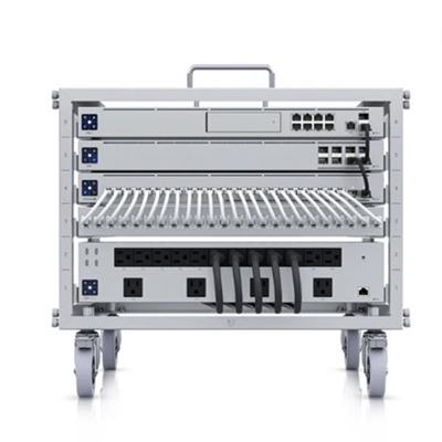 Toolless Mini Rack, 6U-sized device rack with a 24-port blank patch panel that can be assembled without tools. The Toolless Mini Rack (U Rack 6U TL) is a heavy-duty, 6U-sized device rack that can be easily assembled without tools. The U Rack 6U TL is equipped with a 24-port blank patch panel, lockable casters, and can house most rack-mountable Ubiquiti devices.