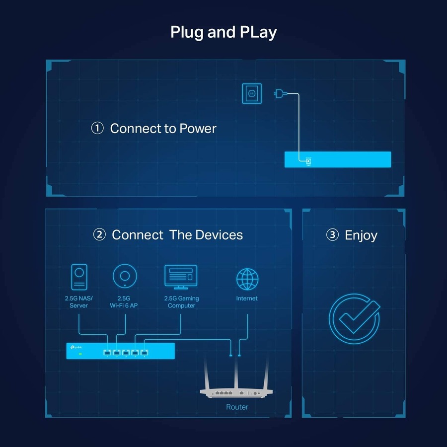 - Five 2.5Gbps Ports for Super-Fast Connections: 5� 2.5-Gigabit ports unlock the highest performance with multi-gig bandwidth and provide up to 25 Gbps of switching capacity.