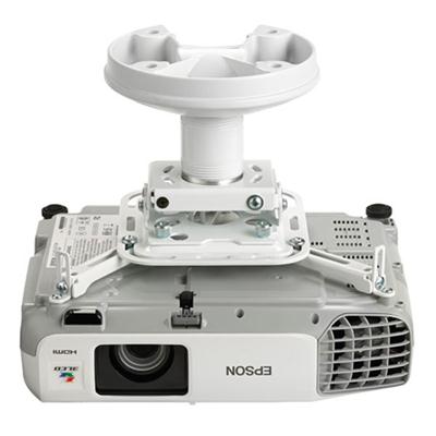 Epson Universal Projector Ceiling Mount Kit includes a universal projector mount, 3″ (76 mm) extension column and SpeedConnect ceiling plate.