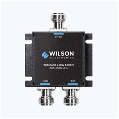 This 2way splitter 859105 is used with WilsonPro cellular repeaters to split a signal allowing 2 antennas to be run from a single cable and receive similar strength. It is required in order to add CBand antennas 311245, 311243, 311242 and repeaters to an existing system. Designed to be used with WilsonPro CBand products, this splitter is compatible with frequencies from 600 to 4,000 MHz. This IP65 indoor and outdoor rated splitter supports CBand, TMobile band 71, and is Pro 710i compatible. As a highperformance splitter, it features low insertion loss and low VSWR voltage standing wave ratio. It is equipped with NFemale connectors. Replaces previous version of 2way splitter 859957. Note: for users requiring current or future CBand support, CBand antennas, splitters, and taps must be used.