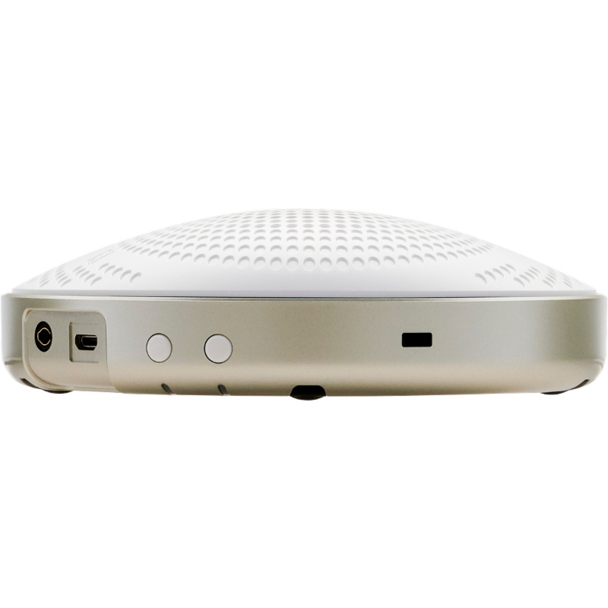 Take important calls wherever, whenever with this personal speakerphone, designed to offer professional-quality audio while connected to your laptop, phone or tablet. The built in rechargeable battery allows for complete portability for up to 10 hours, it’s the ideal device for open workspaces, huddle rooms, home offices, and travel. Available in a choice of white or black, the unit blends into any home or corporate office. Its small, lightweight, and space-saving design is perfect for portability and for deployment at laptop or mobile terminals. A headset jack allows for private listening and the option to enjoy music through the unit between calls.